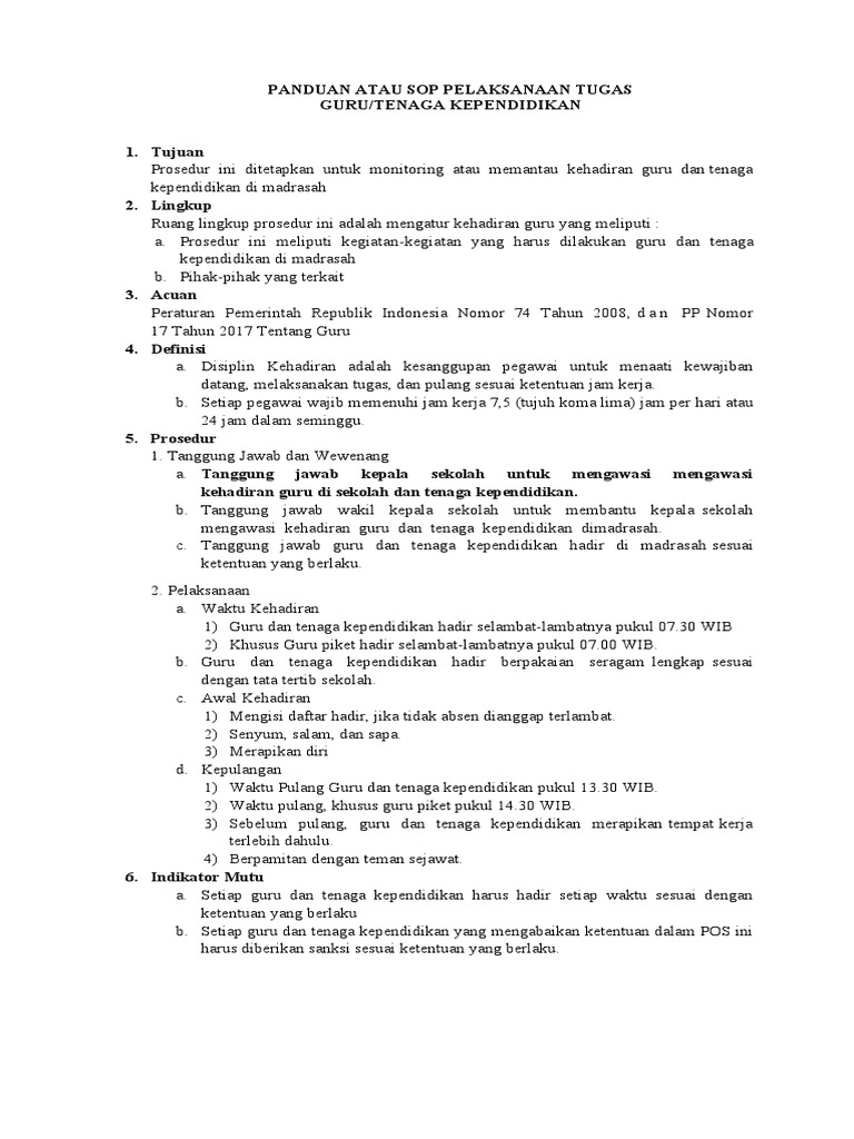 Panduan Atau Sop Pelaksanaan Tugas Guru Tenaga Kependidikan Pdf